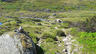 Så bærer det oppover, fra vannet som ligger på 1151 moh og opp til den første varden på 1431 moh var det ca. to km.